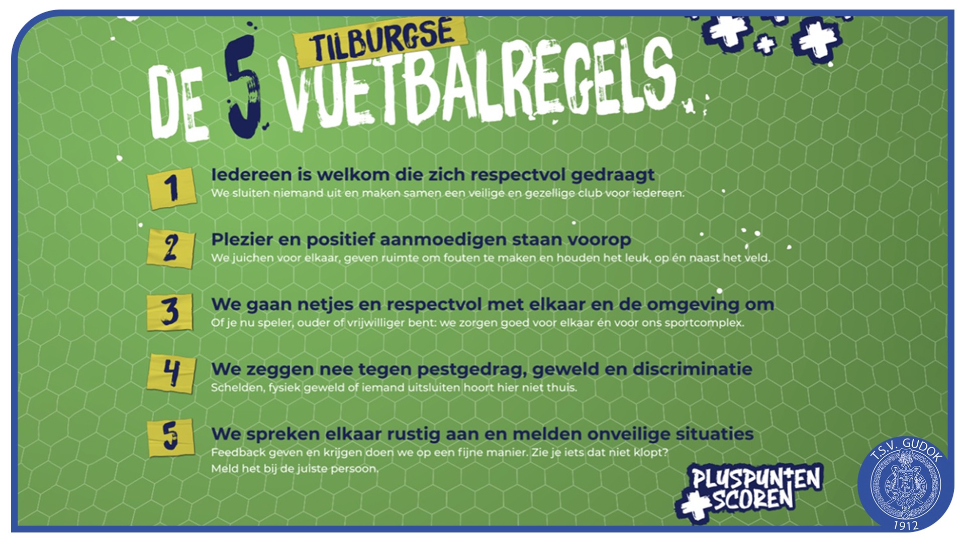 De grootste inhoudelijke vernieuwing is de introductie van vijf nieuwe Tilburgse voetbalregels, die op alle clubs zichtbaar worden via posters, reclameborden en andere communicatiemiddelen.