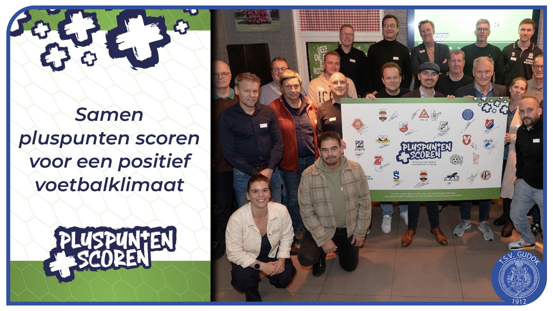 Voetbalverenigingen in gemeente Tilburg hebben vrijdagavond 31 oktober j.l. op het sportpark van Jong Brabant hun handtekening gezet onder een vernieuwd convenant voor een positief voetbalklimaat. Met de introductie van het nieuwe merk ‘Pluspunten scoren’ krijgt het succesvolle initiatief PVKT (Positief Voetbalklimaat Tilburg) uit 2013 een frisse doorstart.